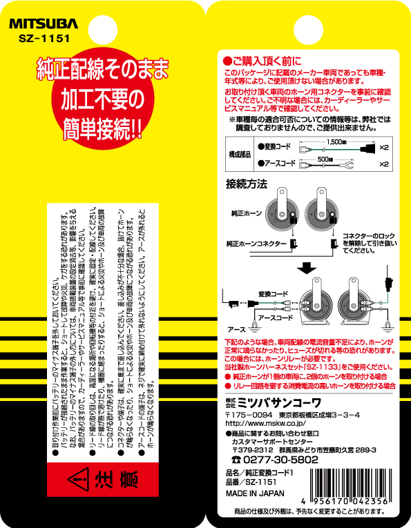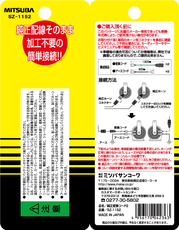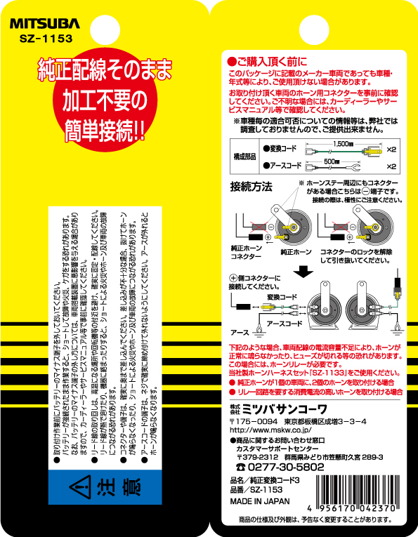 ホーンの純正配線そのままに加工不要の簡単接続!