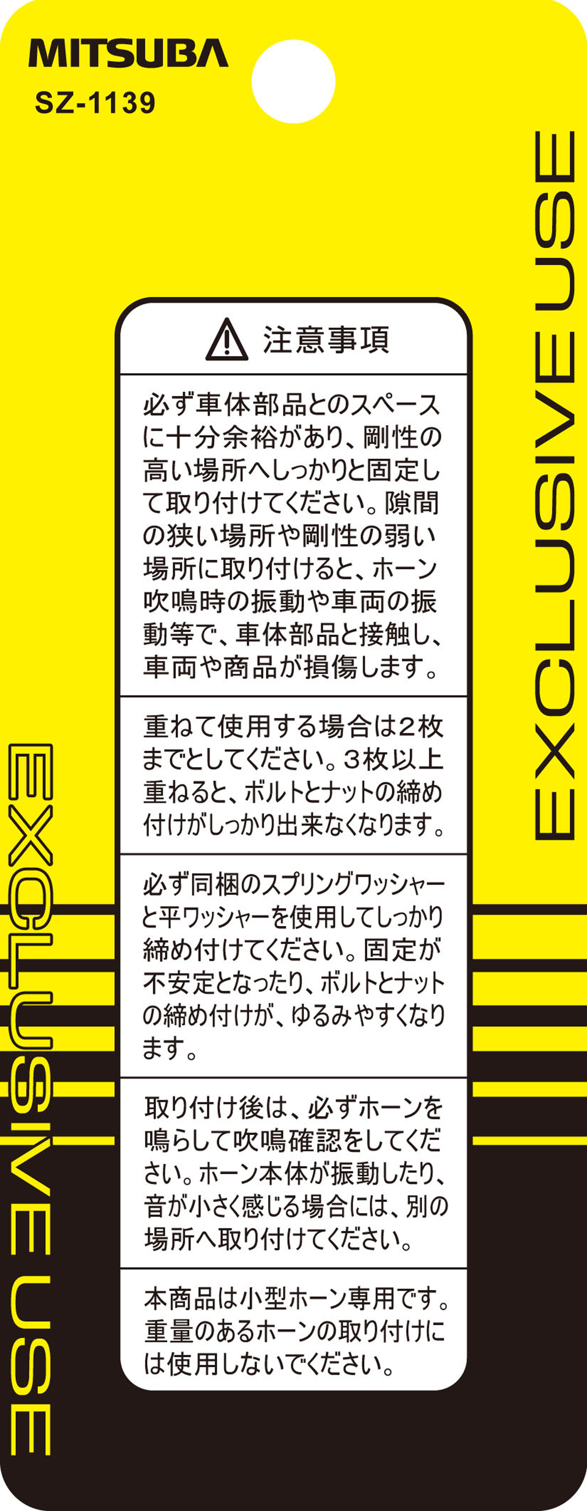 - 表面は1端子ホーンの取り付けにも考慮した導通性重視の亜鉛メッキ仕上げ(六価クロムフリー)です。