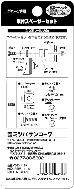 取付スペーサーセットSZ-1139
