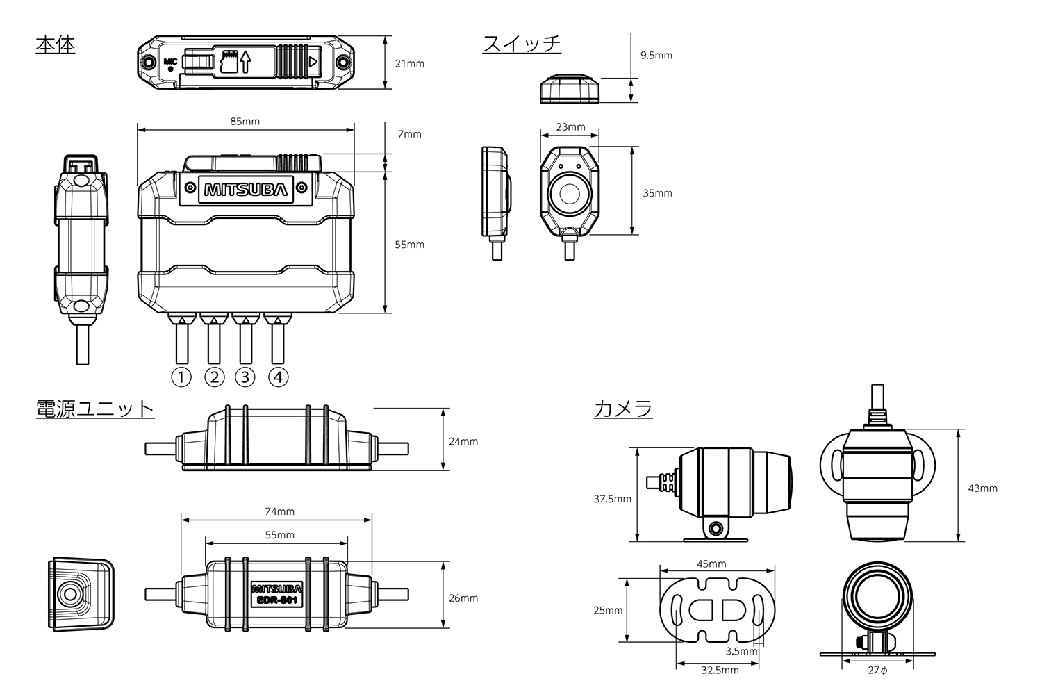 | 記録映像再生方法 | スマートフォンアプリ「Moto DR」※1 PCソフト「Moto DR Player」※2 / PCソフト「Moto DR Player 2.0」※3 |