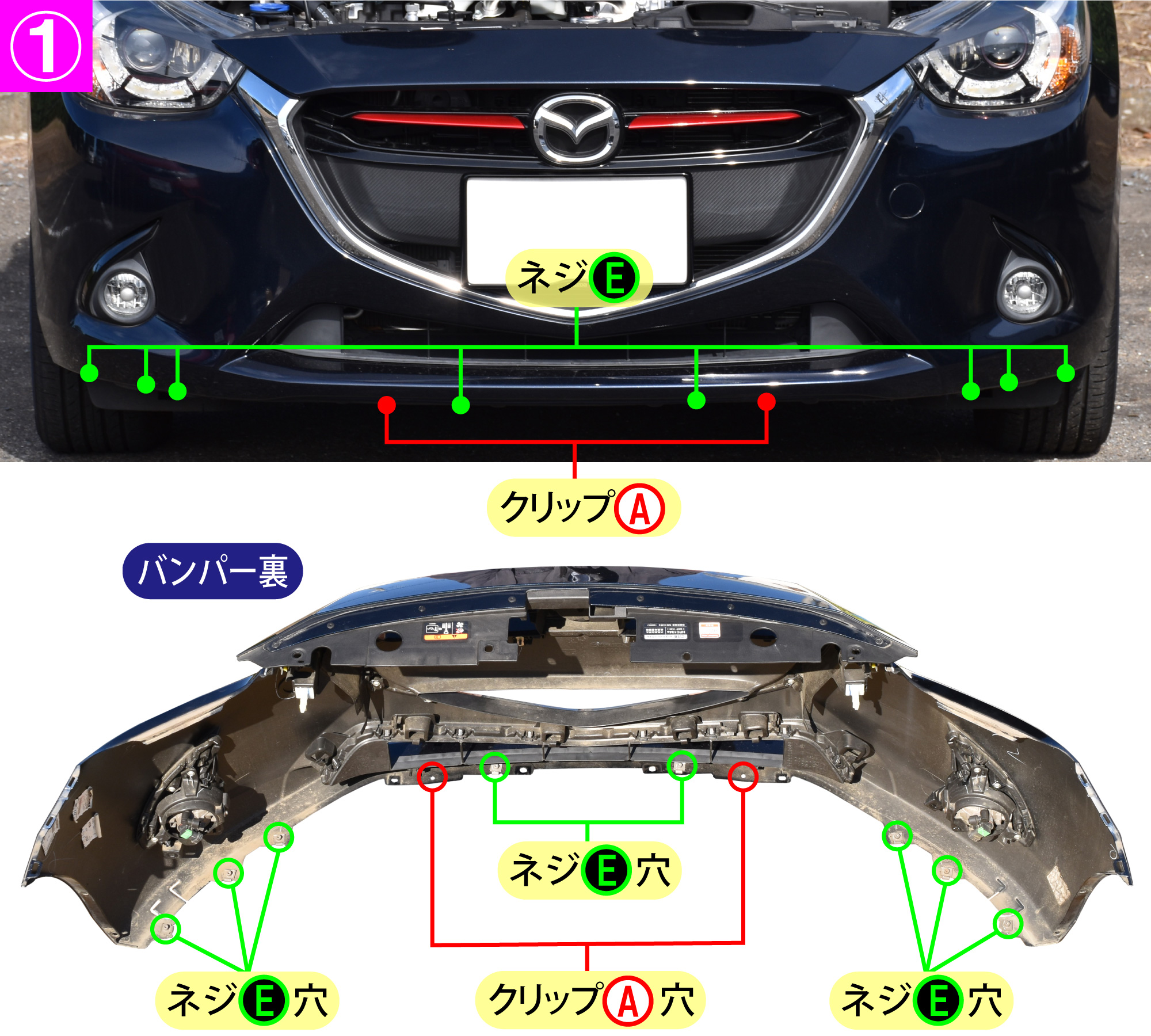 バンパーの取り外しに自信の無い方は、ディーラーまたはカー用品店へ依頼されることをお薦めします。