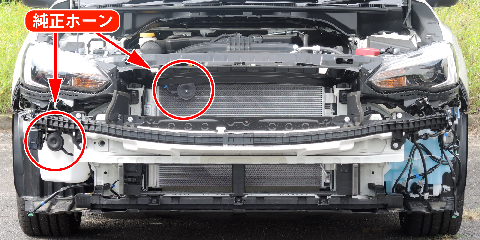 新設ホーンは、純正ホーンの位置へ取り付けます。