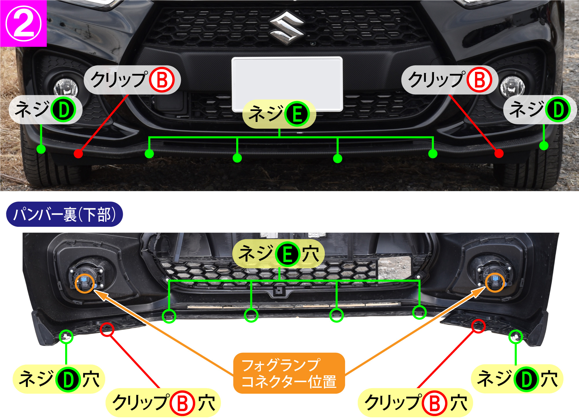 バンパーの取り外しに自信の無い方は、ディーラーまたはカー用品店へ依頼されることをお薦めします。