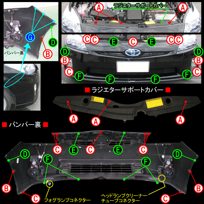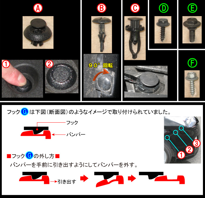 バンパーはフックにハメ込めけられて固定されているだけでした。