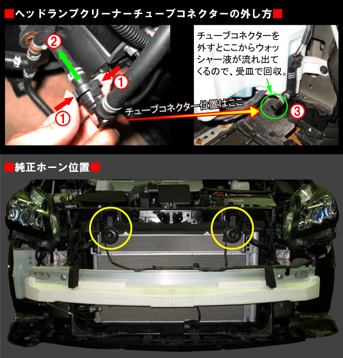 また、ヘッドランプクリーナー未装着車の車両では以下のホーンの取り付けも可能です。