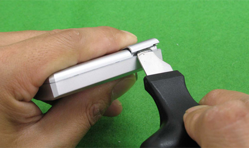 準備:先端の平らな工具をご用意ください。今回は下図工具を使用しました。