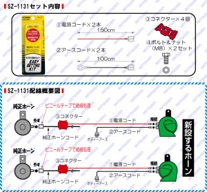 配線はSZ-1131(ラクラク取付セット)の配線方法に従って配線します。