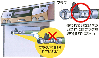 不使用のネジガス栓には、プラグを取り付けてください。お問い合わせ先